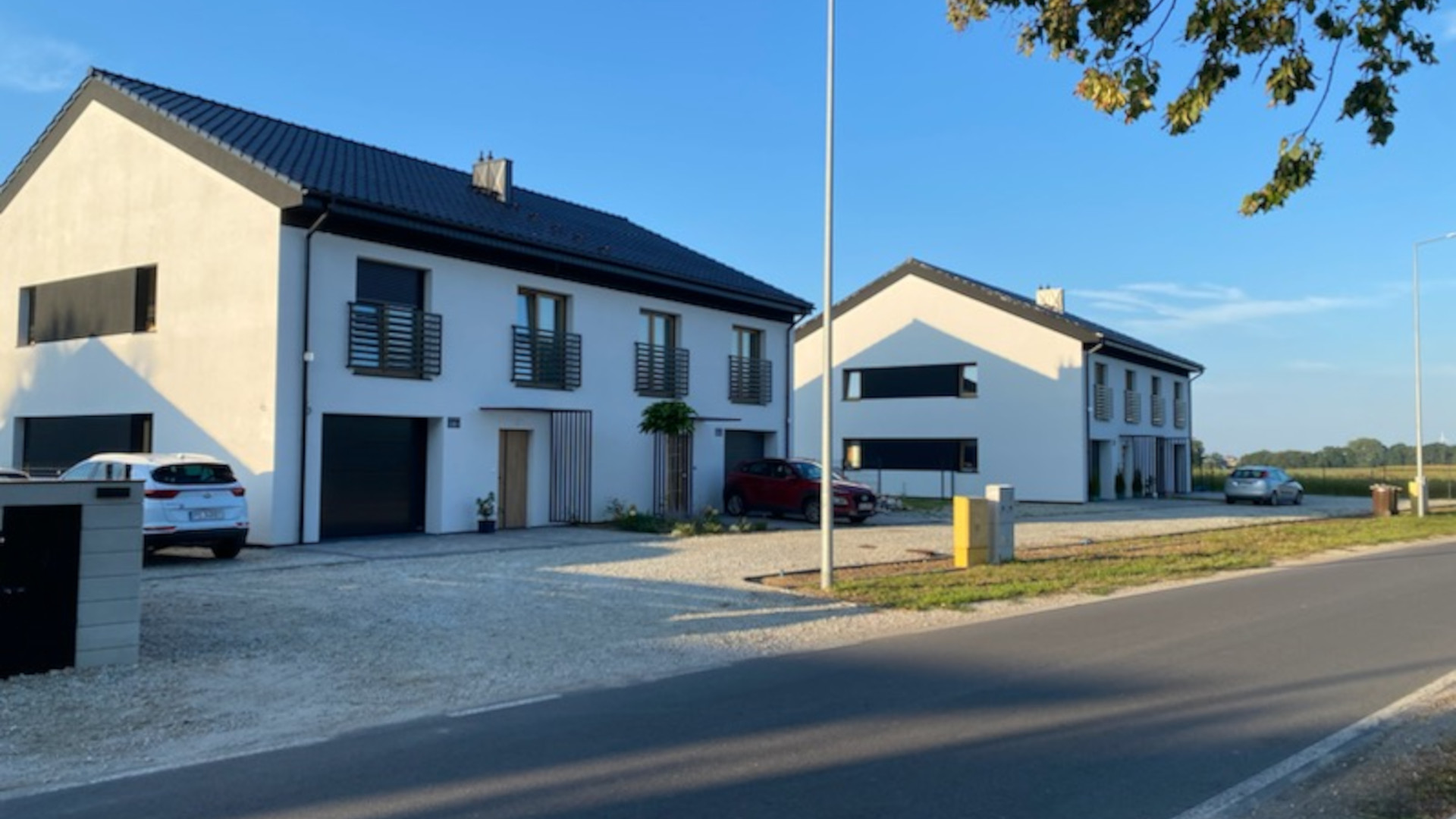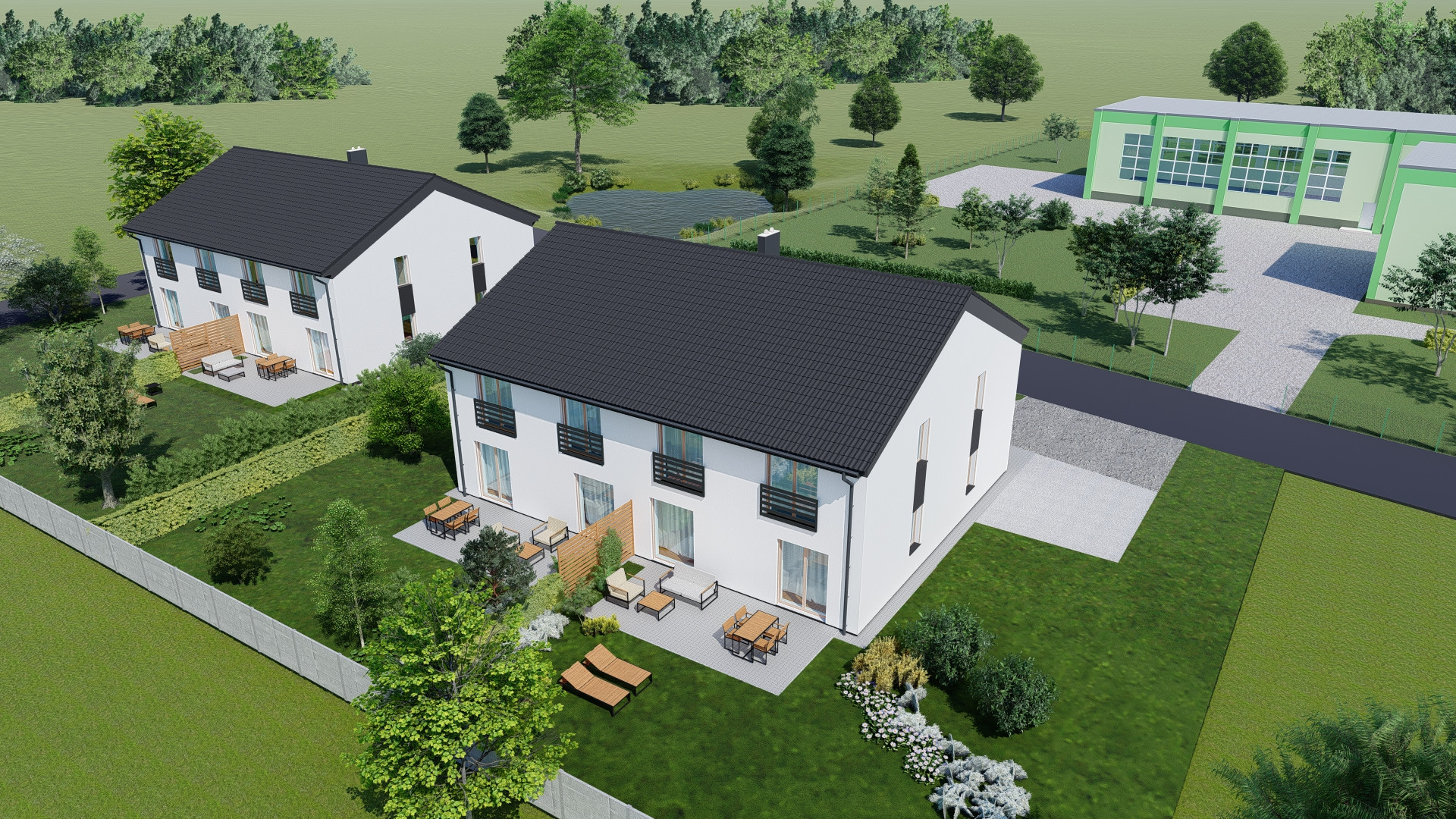 Duże domy dwulokalowe w małej miejscowości bodzyniewo k/Śremu. Przestronne, z garażami i dużymi ogrodami oraz wspólną drogą wewnętrzną.